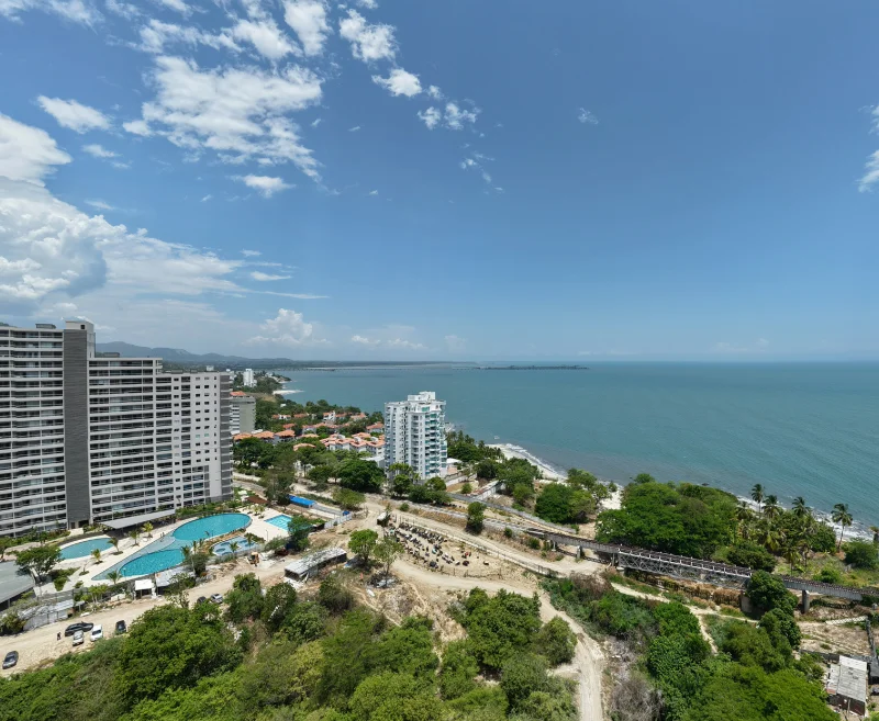 El proyecto Santa Marina se desarrollará bajo licencia Turística. El proyecto estará integrado por dos globos de terreno; una Zona Residencial y un Club de Playa que serán parte de la misma copropiedad. El Club de Playa se encontrará ubicado en primera línea de mar, y se podrá acceder al mismo a través de una reserva vial que no pertenece al proyecto. El proyecto Santa Marina será desarrollado por macroetapas, cada una de las cuales tendrá diferentes etapas (enunciadas como etapas 1 a 12 en el encargo fiduciario de preventas), por tanto, las zonas comunes ofrecidas en cada macroetapa estarán supeditadas en su entrega al desarrollo y escrituración del 51% o más de las unidades de la última etapa de la correspondiente macroetapa. Las imágenes, muebles, electrodomésticos y elementos de decoración ilustrados son una representación artística, los lugares, espacios y ambientación corresponden a imágenes de referencia que no representan específicamente la realidad del proyecto. Las dimensiones, áreas privadas y construidas, precios, separación, cuotas, texturas y colores ilustrados y anotados en las imágenes publicitarias, pueden tener variaciones por efectos de la coordinación técnica, diseños técnicos finales, disponibilidad de materiales, aprobaciones de la licencia de construcción por parte de la Curaduría Urbana y el proceso constructivo.