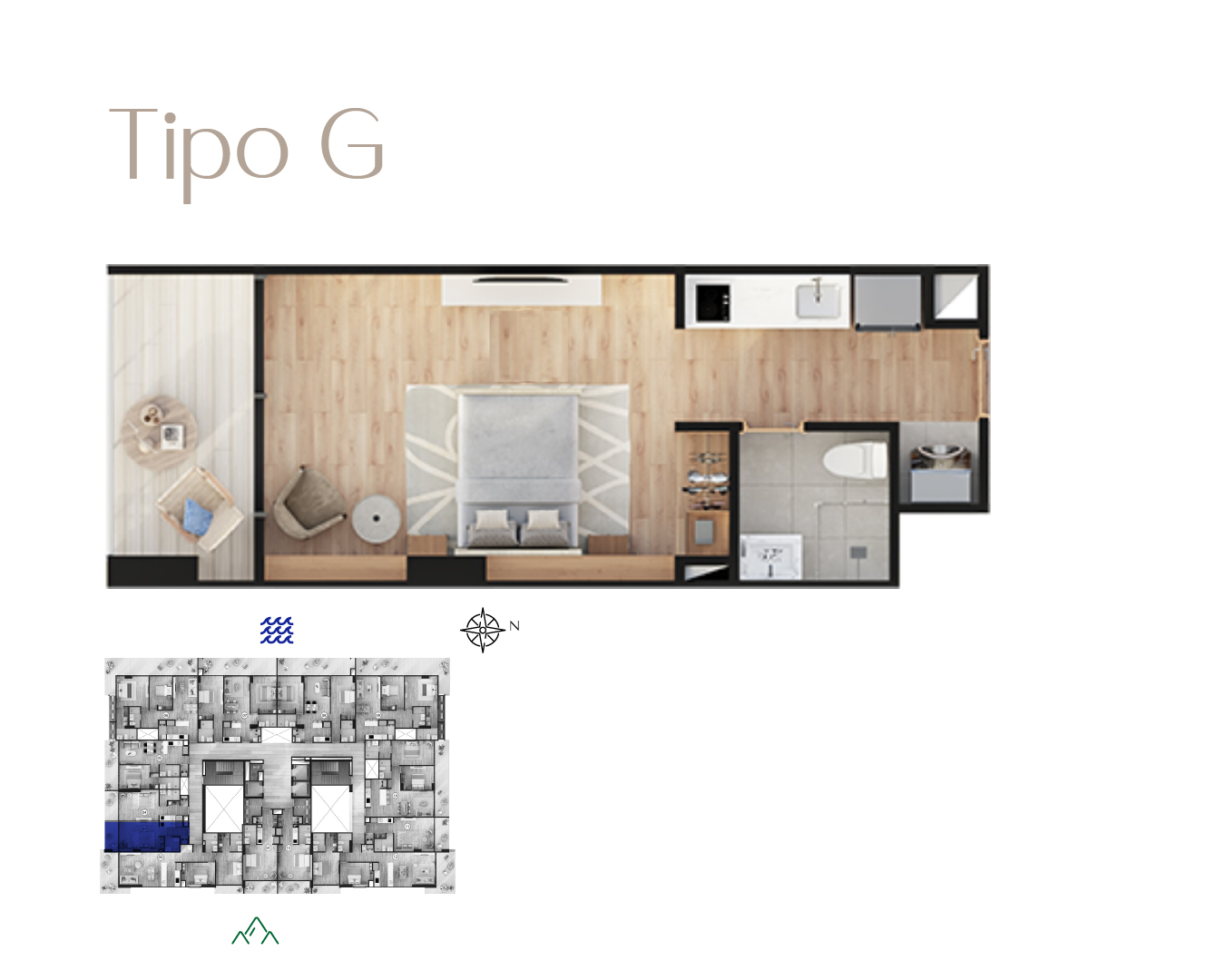 *Área privada apartamento aproximada: 28,74 m²