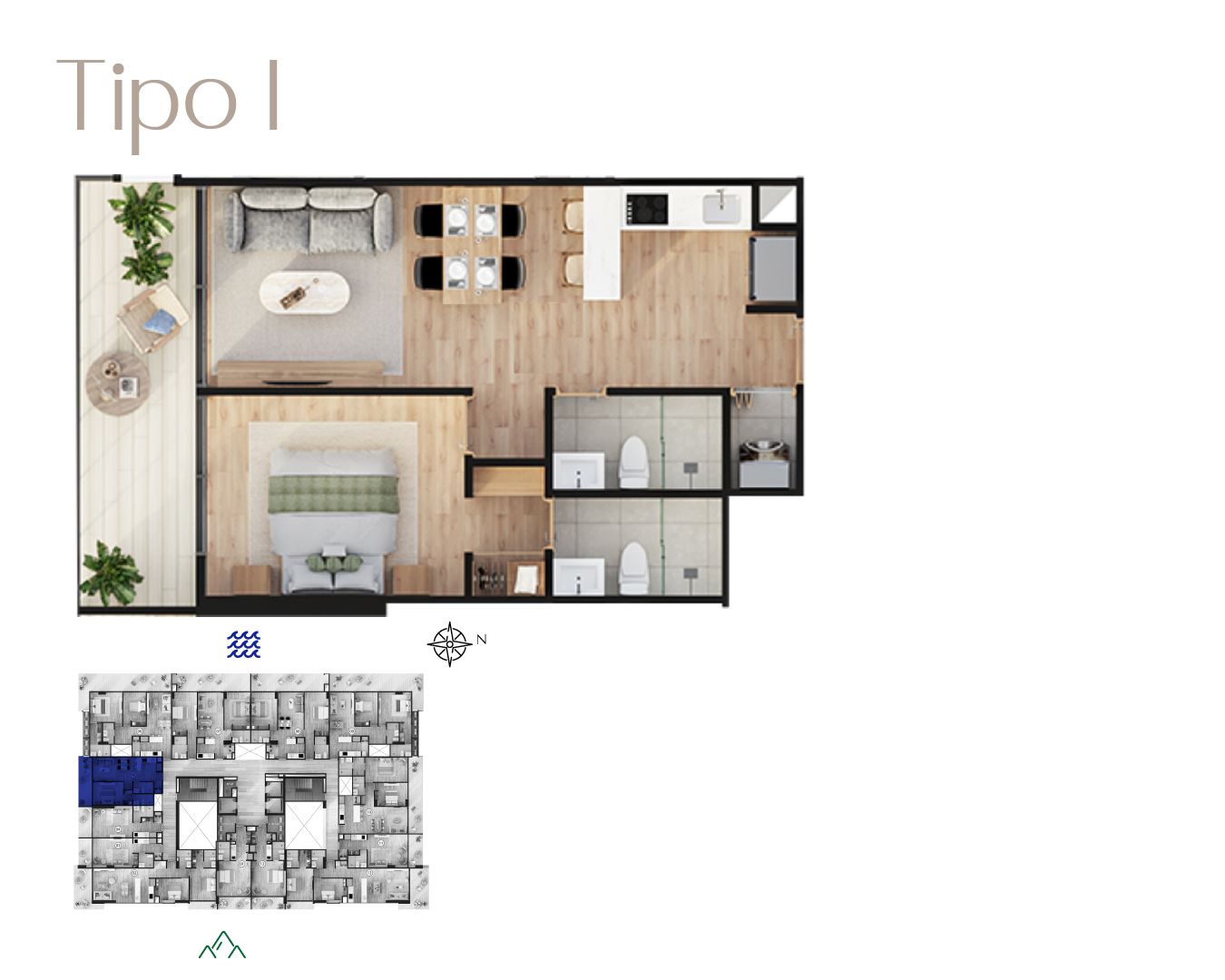 *Área privada apartamento aproximada: 43,68 m²